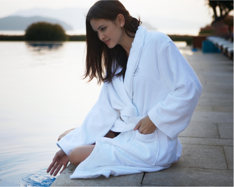 হোটেল হোয়াইট কটন কাটিং ভেলভেট বাথরোব পণ্যের বিবরণ